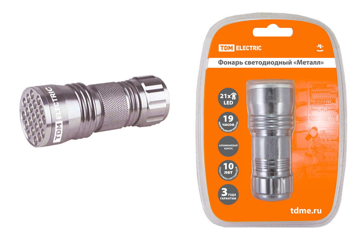 Фонарь TDM ELECTRIC "Металл", 21 светодиод 63 лм/Вт, бат. 3*AAA