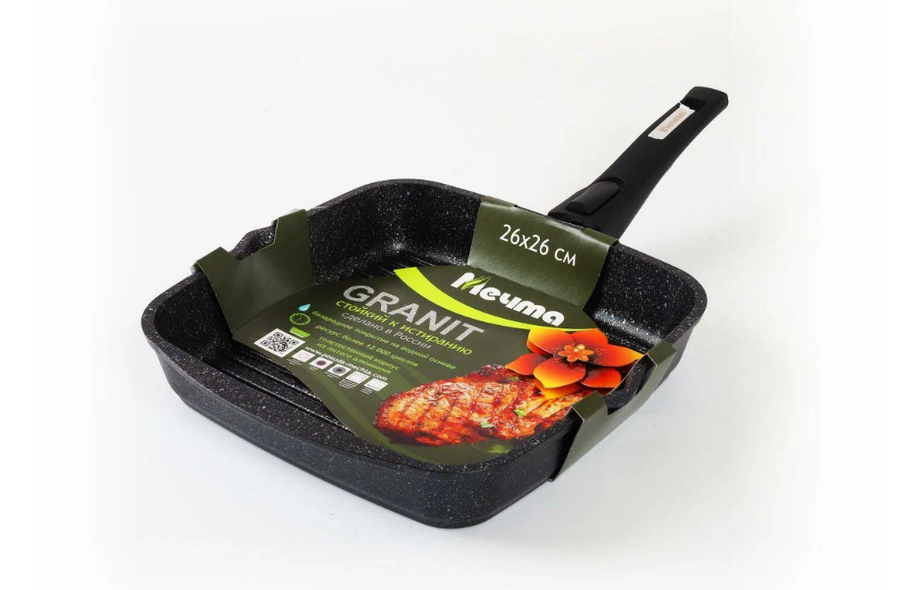 Сковорода-гриль мечта посуда мечта Гранит black, квадратная, съемная ручка, 26 см