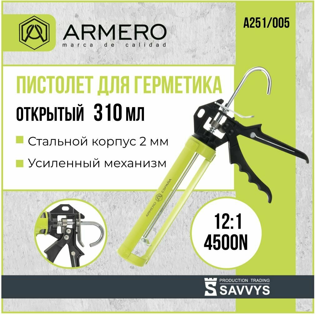 Пистолет для герметика Armero A251/005, 310мл, скелетного типа.