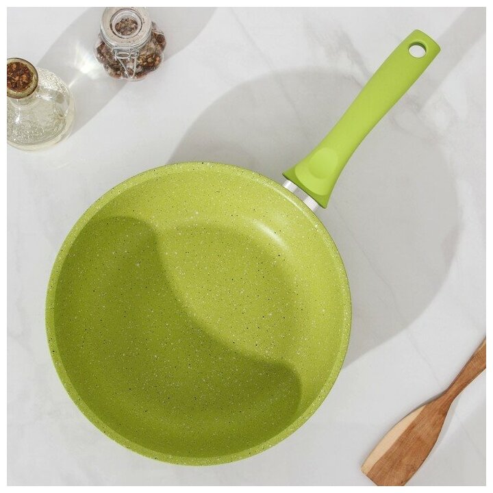Сковорода KUKMARA Trendy style, d=26 см, пластиковая ручка, антипригарное покрытие, зелёный