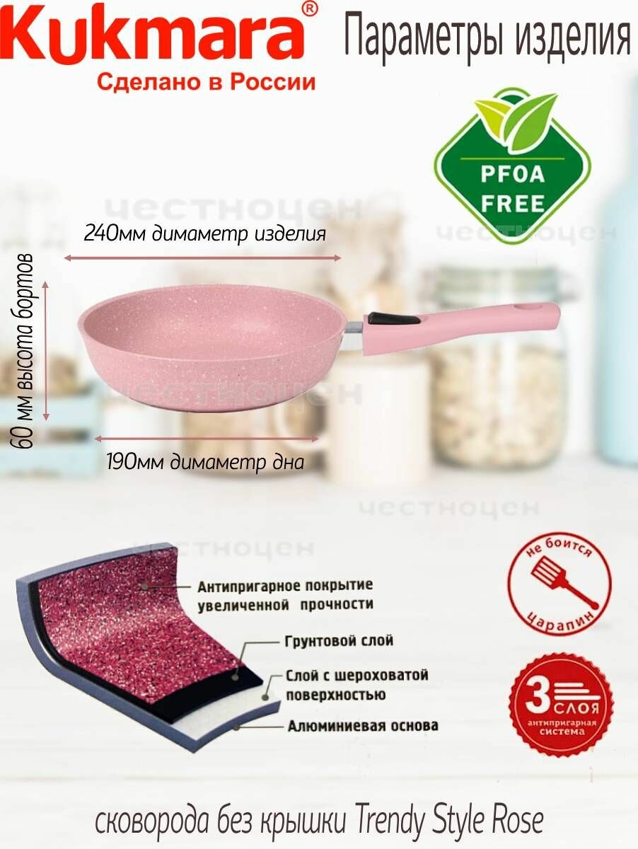 СохранитьСковорода 24см Kukmara Кукмара съемной ручкой антипригар покрытие Trendy style цвет rose Кукмара 241tsr интересное: