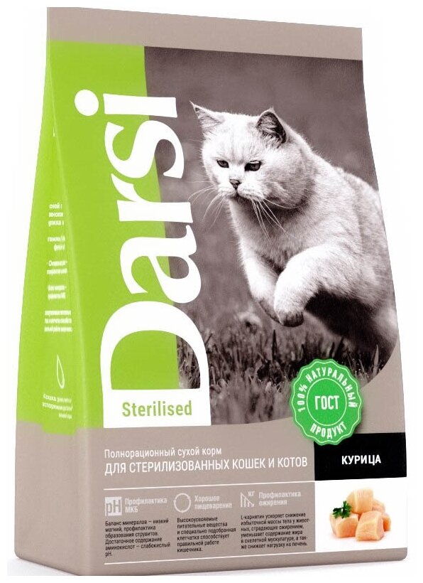 Корм Darsi для стерилизованных кошек и котов Курица, 1.8 кг