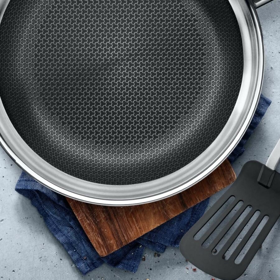 | Плюсы: | Великолепная сковорода для обжаривания при высокой температуре. |