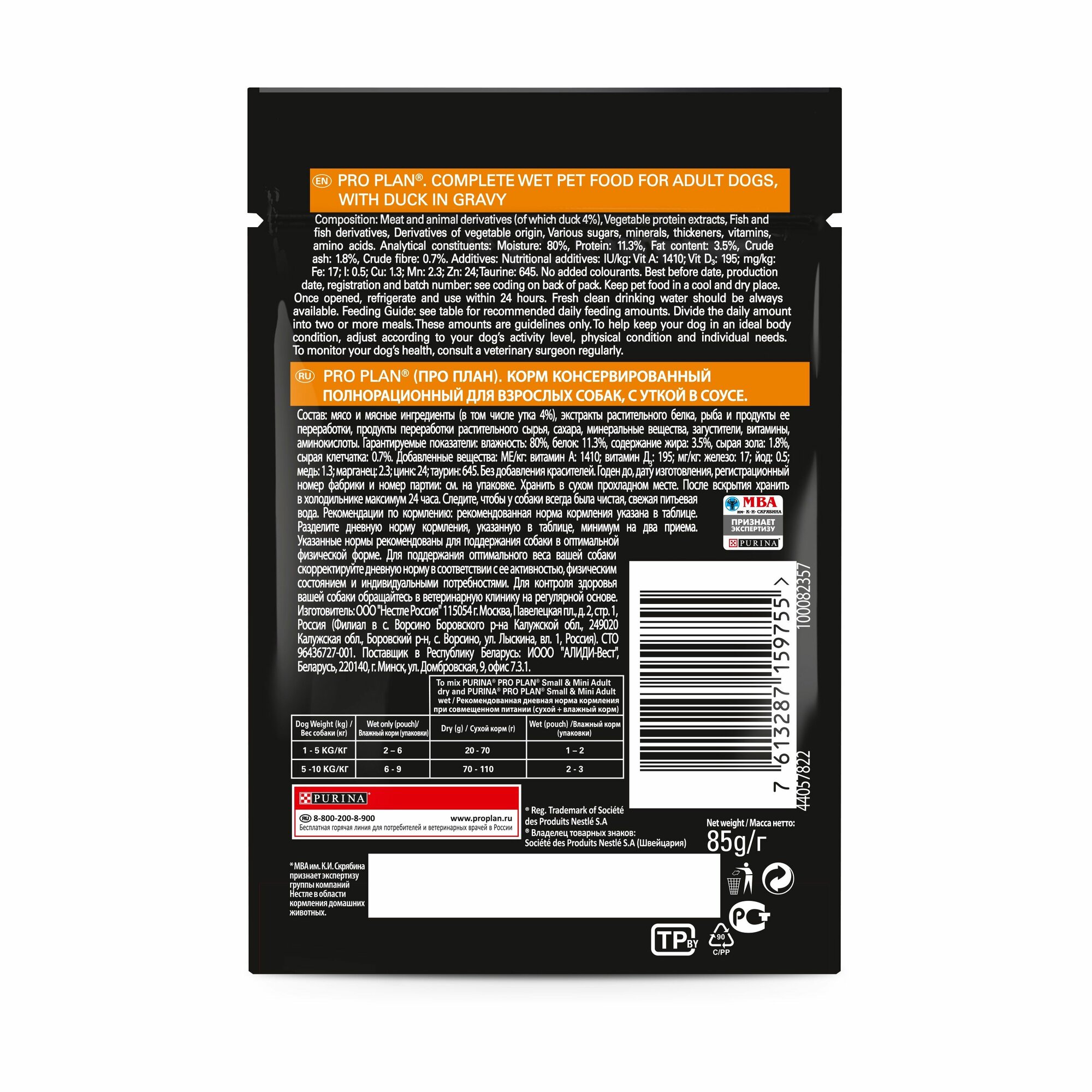 Влажный корм Pro Plan для собак мелких и карликовых пород, c уткой в соусе, пауч, 85 г