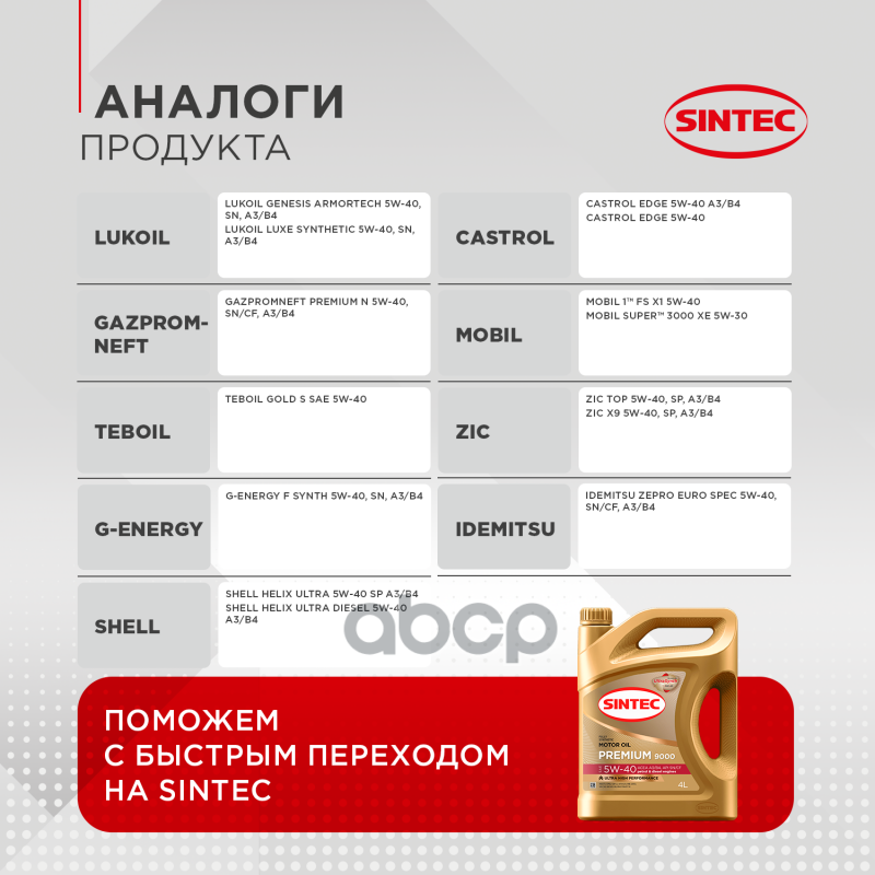 Ниже Вы можете прочитать отзывы на SINTEC Масло Моторное Sintec Premium 9000 5W-40 A3/B4 Sn/Cf 4Л, ознакомится с подробными характеристиками, посмотреть интересные обзоры и фотографии на SINTEC Масло Моторное Sintec Premium 9000 5W-40 A3/B4 Sn/Cf 4Л.