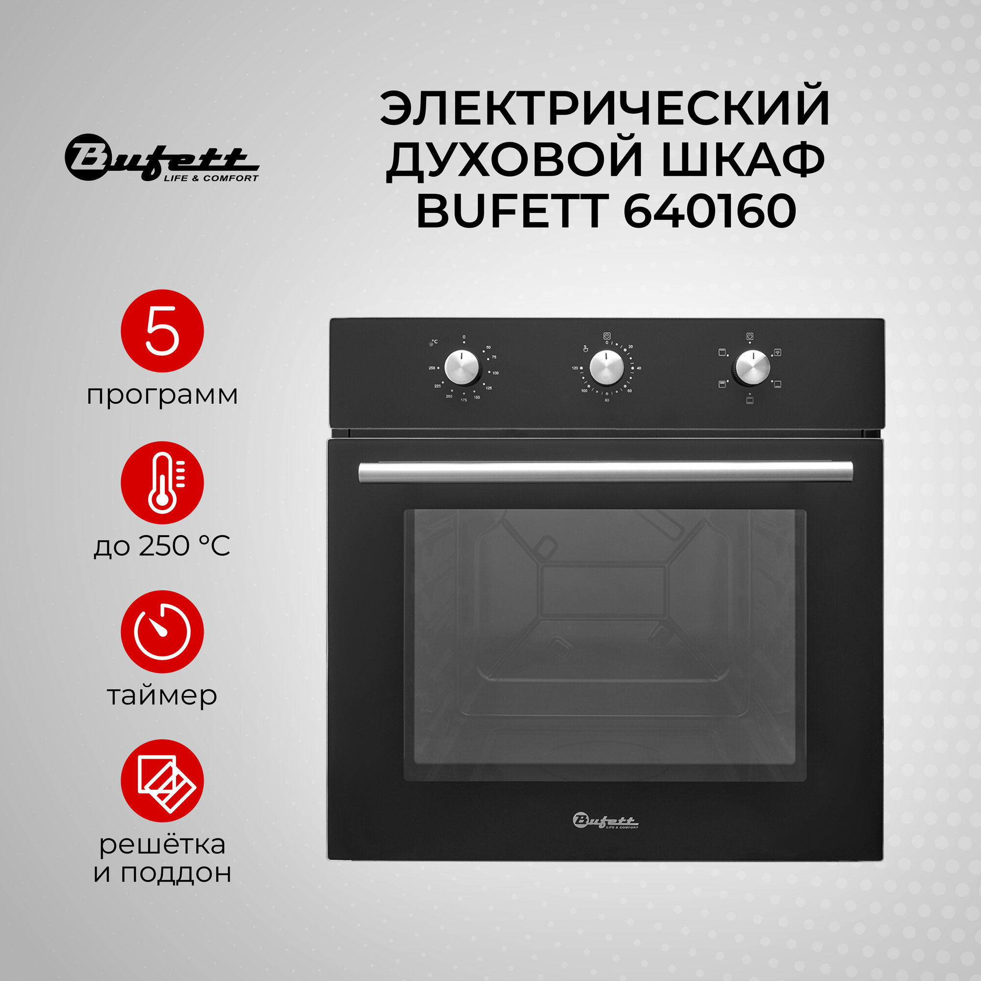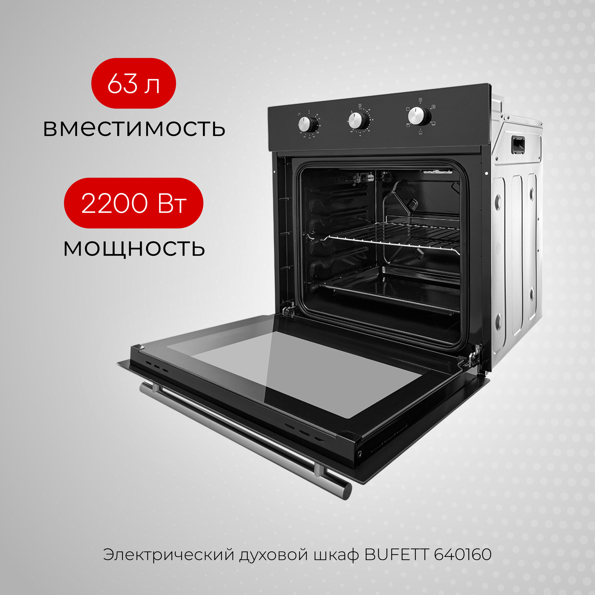 Духовой шкаф электрический встраиваемый 60см BUFETT 640160, 63л, 2200 Вт интересное: