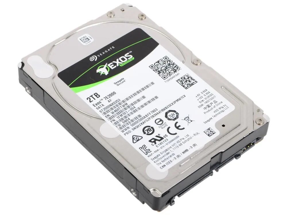 Жесткий диск HDD SATA 2,5" Seagate 2000Gb (2Tb), ST2000NX0253, Exos 7E2000 2.5, 7200 rpm, 128Mb buffer, 1 year