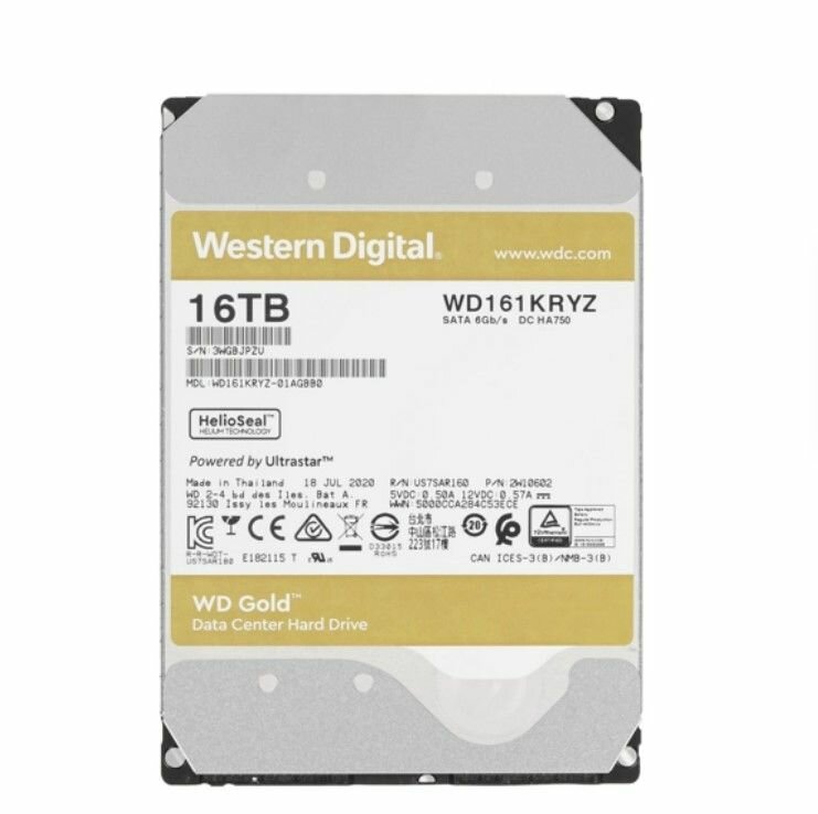 Жесткий диск 16TB SATA 6Gb/s Western Digital WD161KRYZ WD Gold 3.5" 7200rpm 512MB