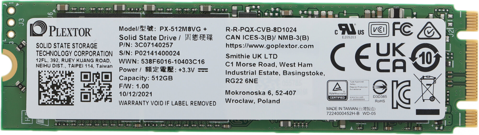 SSD накопитель Plextor M8VG Plus PX-512M8VG+ 512ГБ, M.2 2280, SATA III, NVMe, M.2