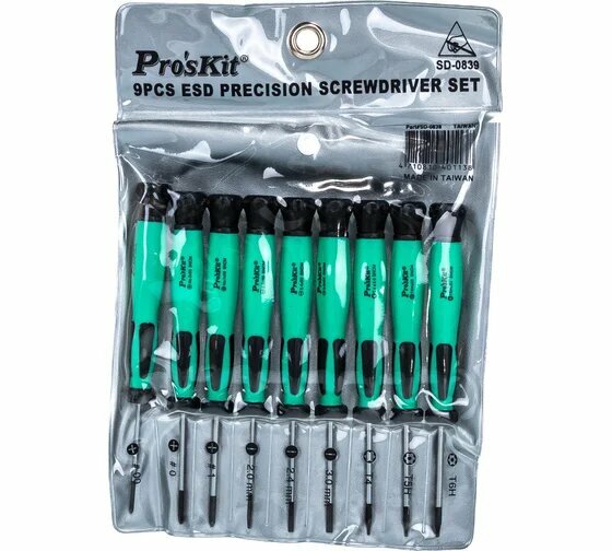 Набор отверток прецизионных антистатических Pro'sKit Sd-0839, 9 предметов в наборе Proskit SD-0839 .