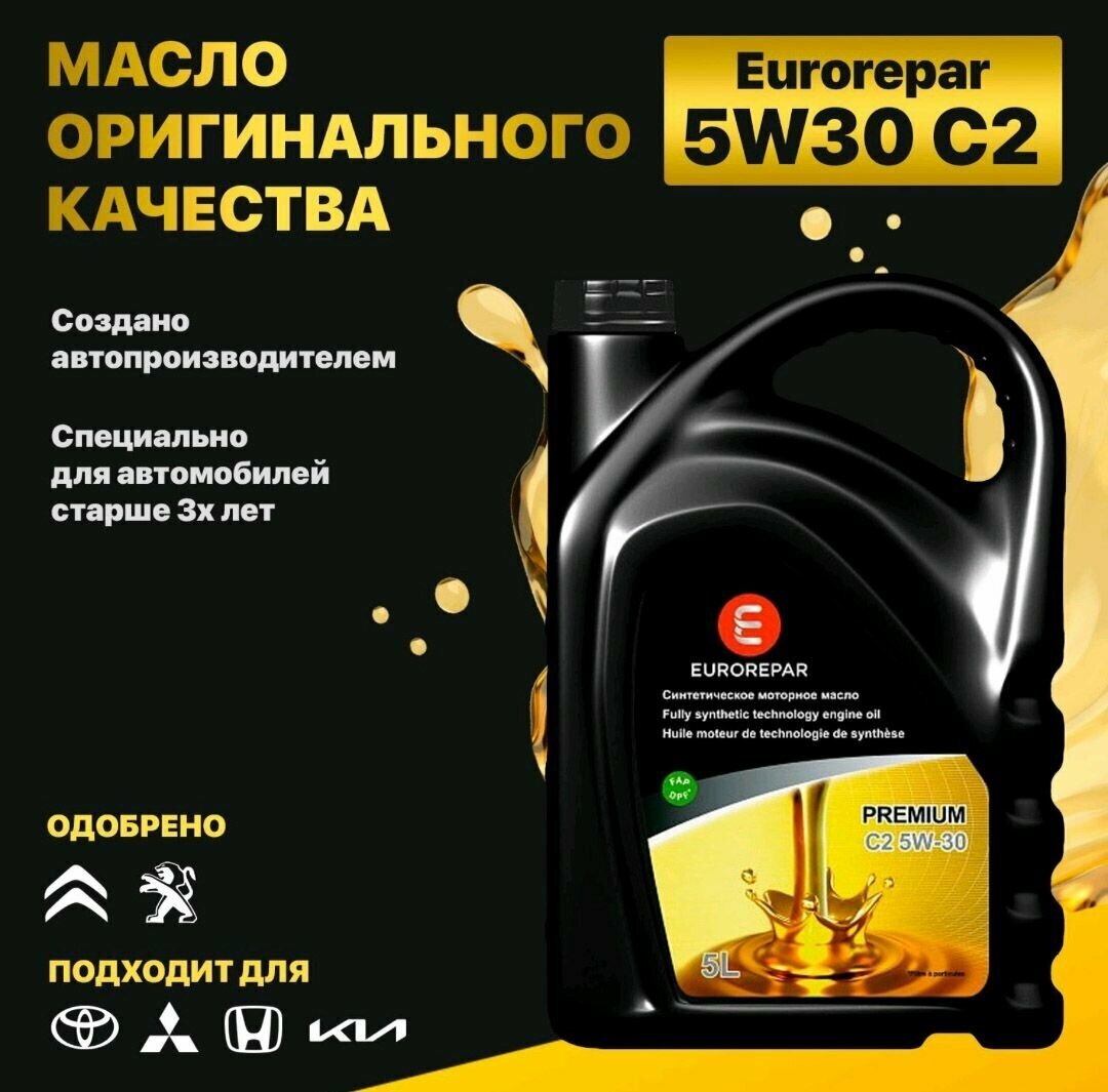 Синтетическое моторное масло Eurorepar Premium C2 5W-30, 5 л, 4.5 кг, 1 шт
