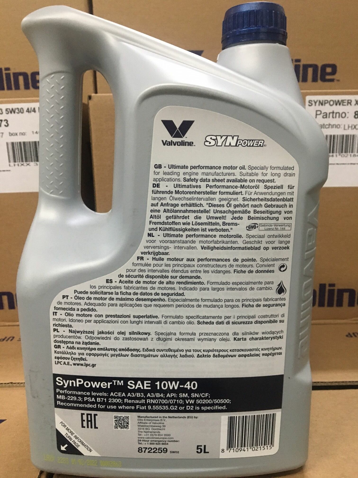 VALVOLINE 872259 VALVOLINE SYNPOWER 10W40 4 X 5 L SW