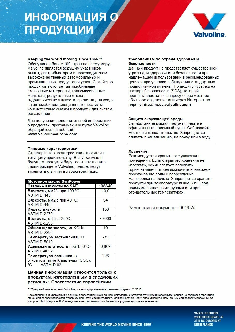 СохранитьVALVOLINE 872259 Valvoline SynPower 10w40 п/син 5 акция по цене 4 интересное: