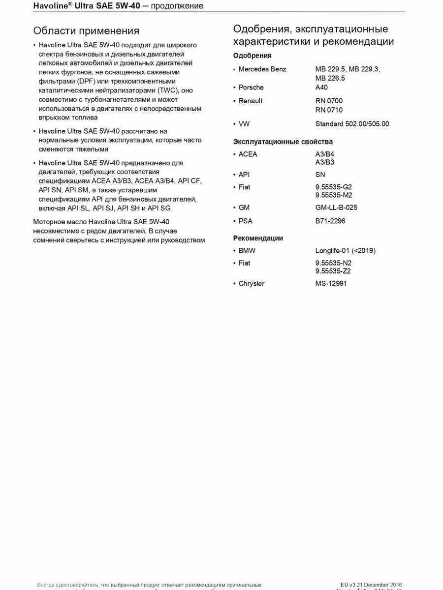 | Допуски OEM | VW 502.00/505.00 / PSA B71 2296 / Renault RN 0710 / MB 226.5 / PORSCHE A40 / Renault RN 0700 / FIAT 9.55535-M2 / FIAT 9.55535-G2 / MB 229.5 |