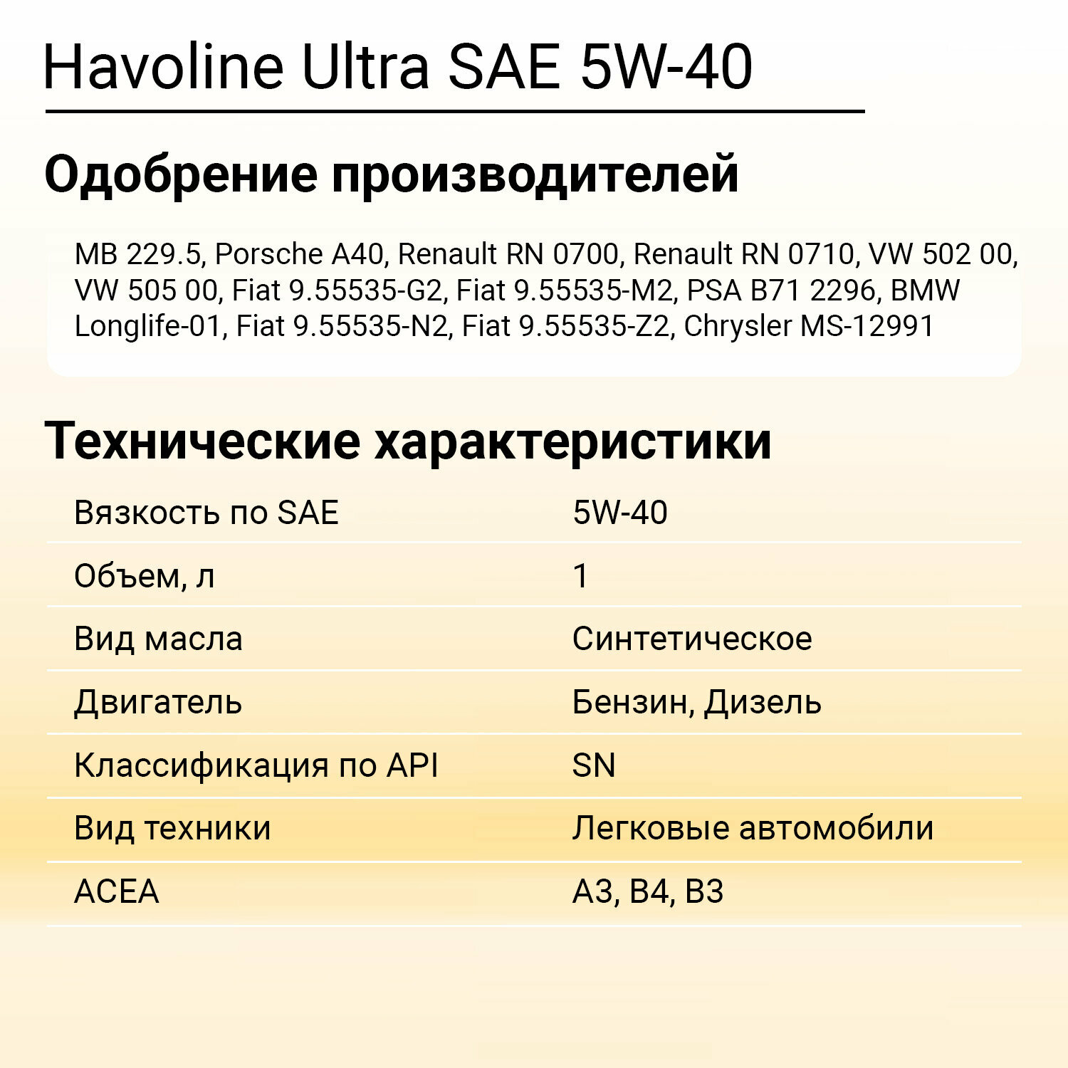 Масло моторное HAVOLINE ULTRA 5W-40, 4л