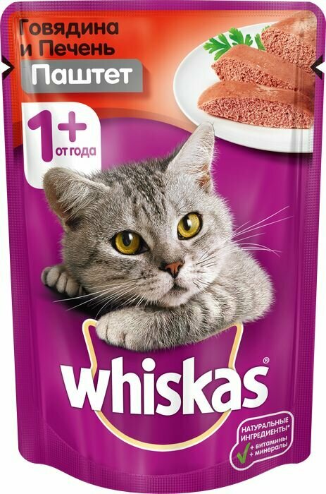 Купить Влажный корм для кошек Whiskas, паштет с говядиной и печенью, 75 г