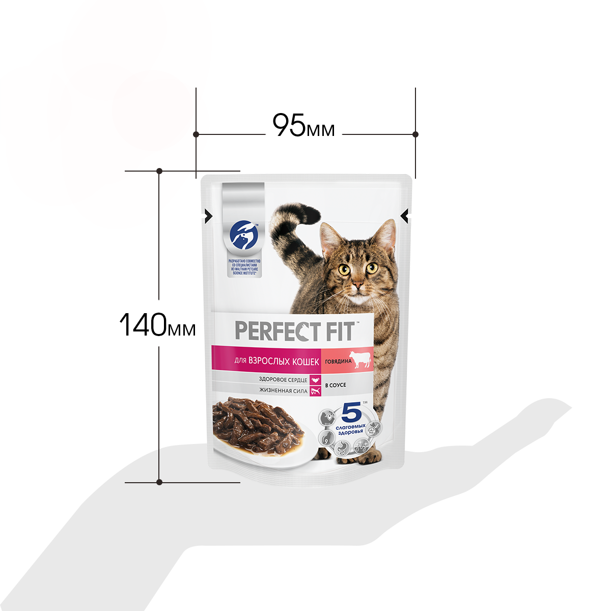 Perfect Fit влажный корм для взрослых кошек с говядиной в соусе, в паучах - 75 г х 28 шт