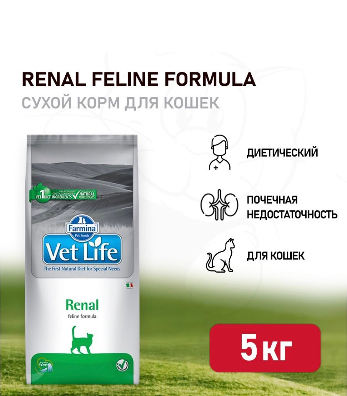 Сухой диетический корм при почечной недостаточности для кошек Farmina Vet Life Feline Renal, 5 кг