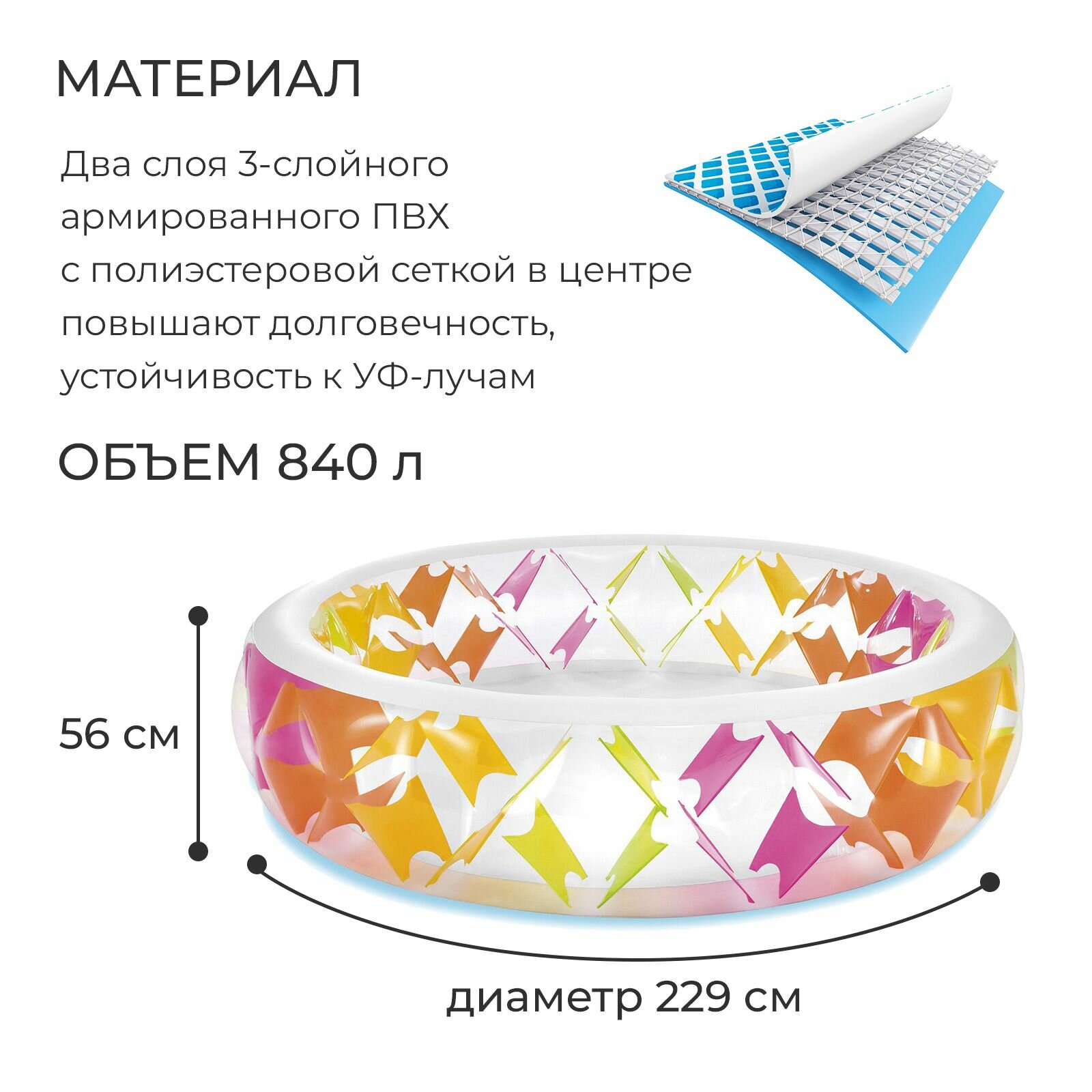 Бассейн надувной Intex, с цветными вставками, 229х56 см, в коробке