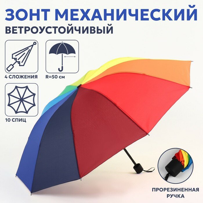 Зонт механический «Радужное настроение», 4 сложения, 10 спиц, R = 50 см, разноцветный