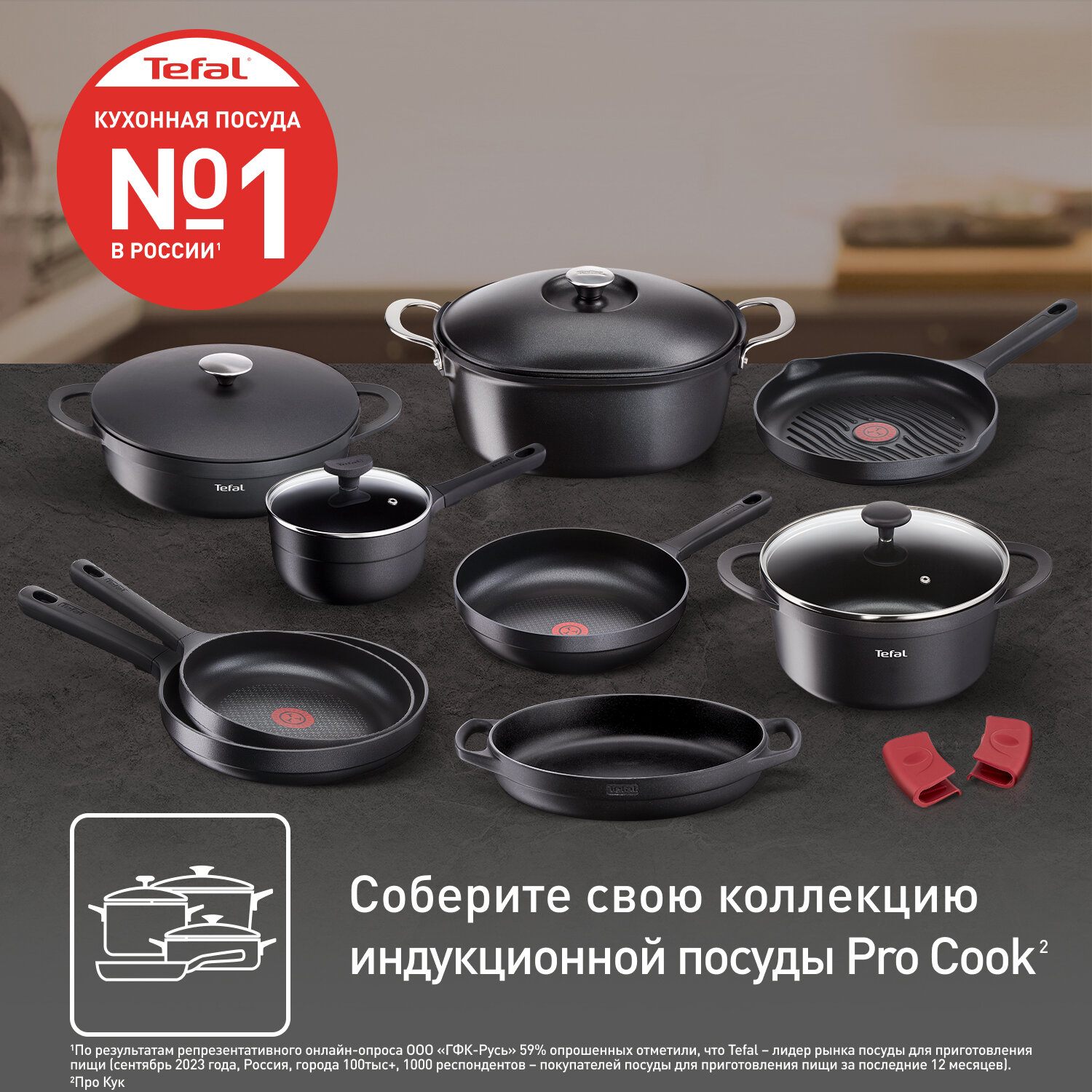 Сковорода-гриль TEFAL Pro Cook 26см, антипригарное покрытие, литой алюминий