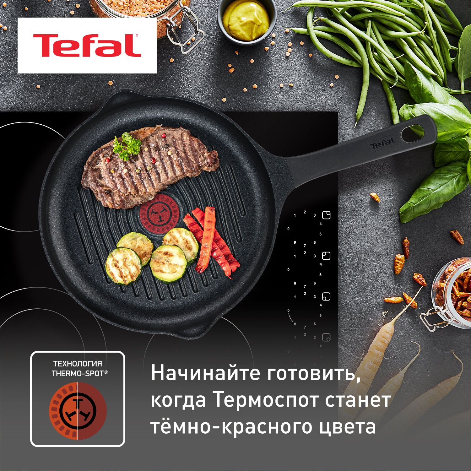 Круглая сковорода гриль Tefal Pro Cook 26 см G6054075, с индикатором температуры, антипригарным покрытием, для всех типов плит интересное: