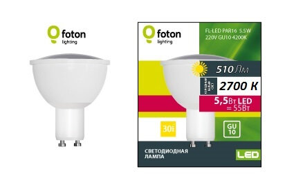 FL-LED PAR16 5.5W 220V GU10 2700K 56xd50 510Лм FOTON LIGHTING - лампа интересное: