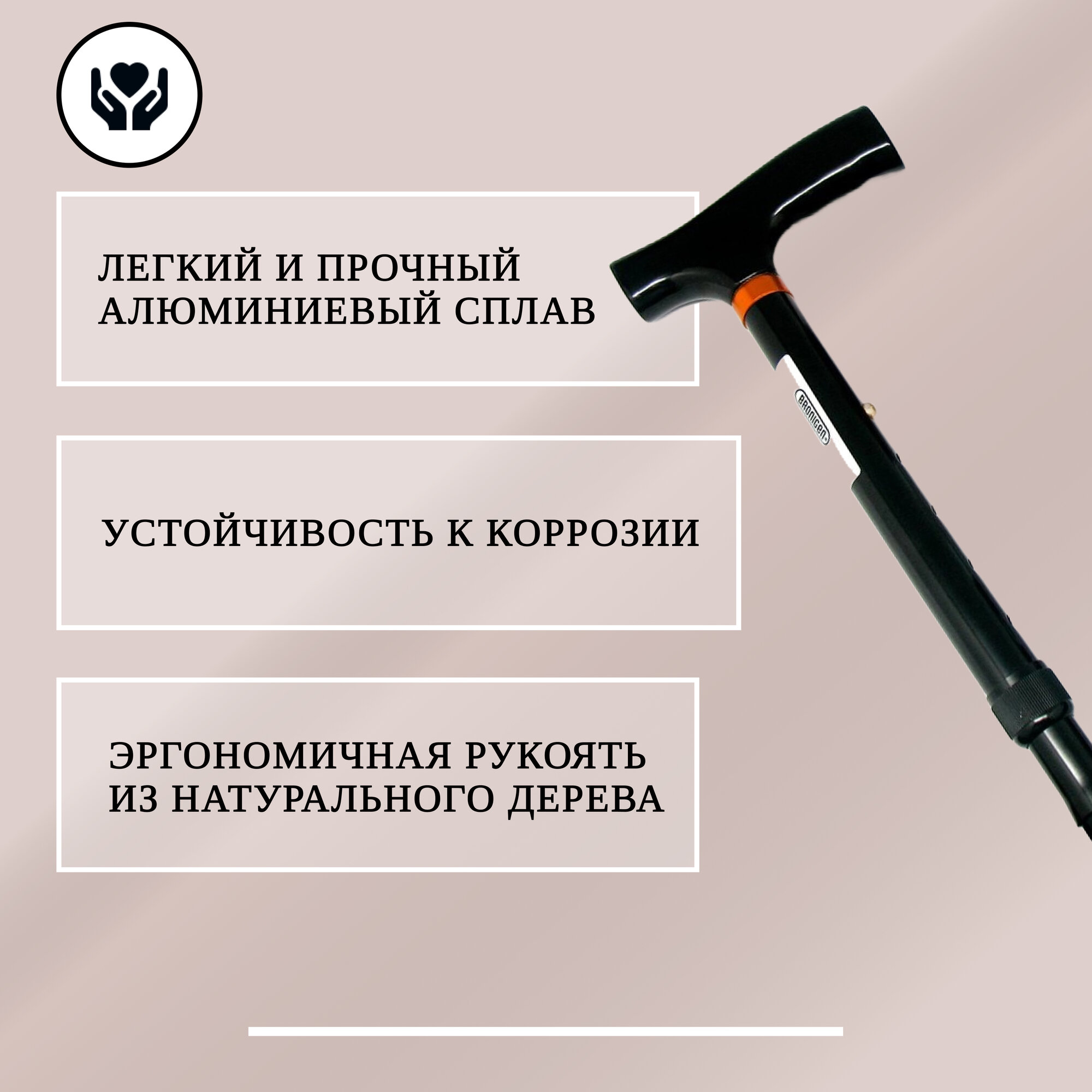 Опорная трость для пожилых телескопическая Bronigen BOC-200, регулируемая по высоте, для ходьбы с устройством против скольжения, черная с упс