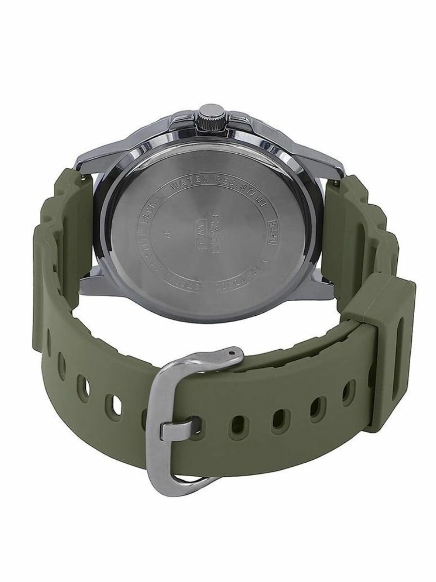 MTP-VD300-3B Casio наручные часы кварцевые WR30 (3 атм) мужские хром, хаки отображение числа, отображение дня недели подсветка стрелок минеральное стекло