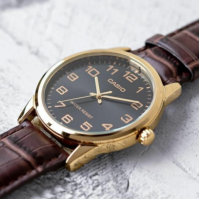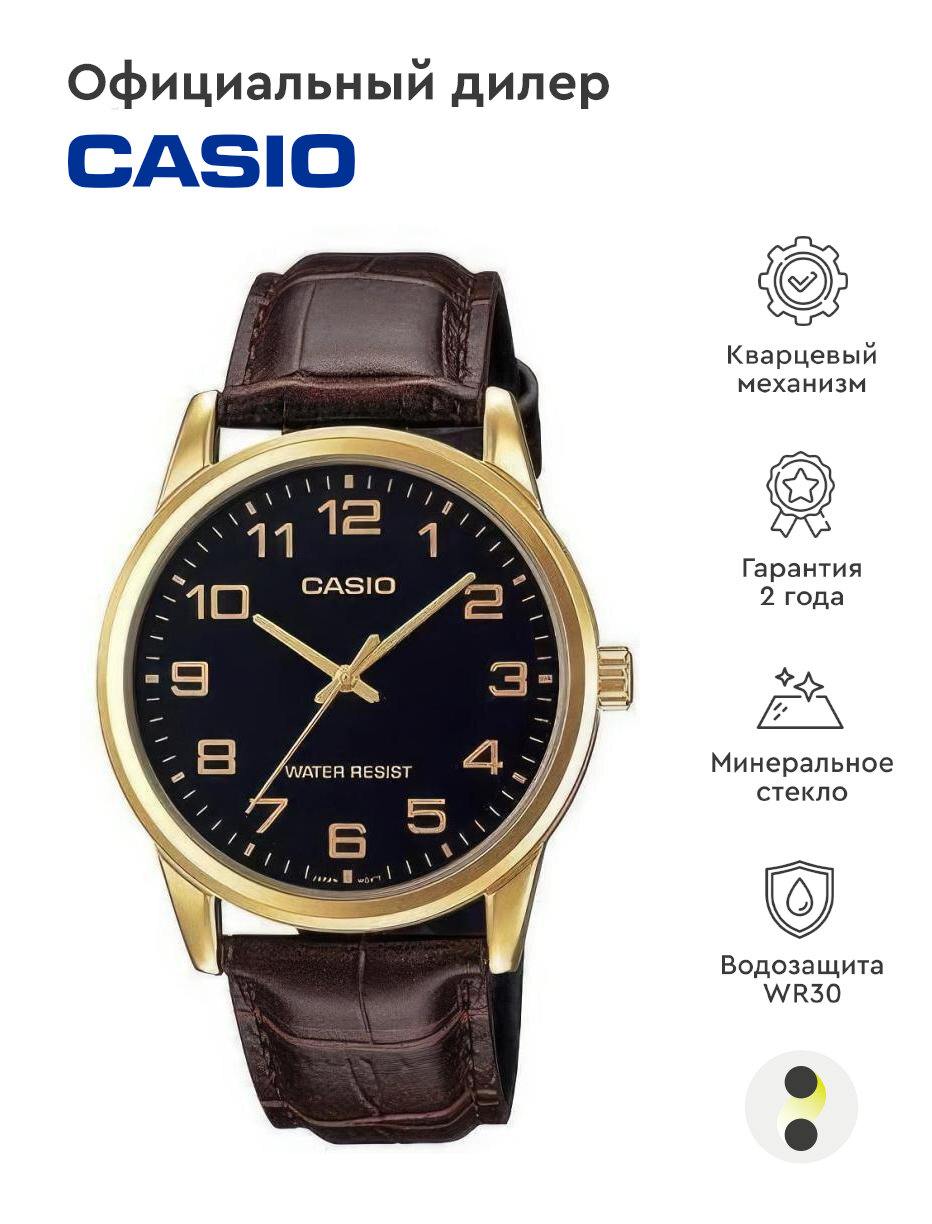 Наручные часы CASIO MTP-V001GL-1B, черный, золотой