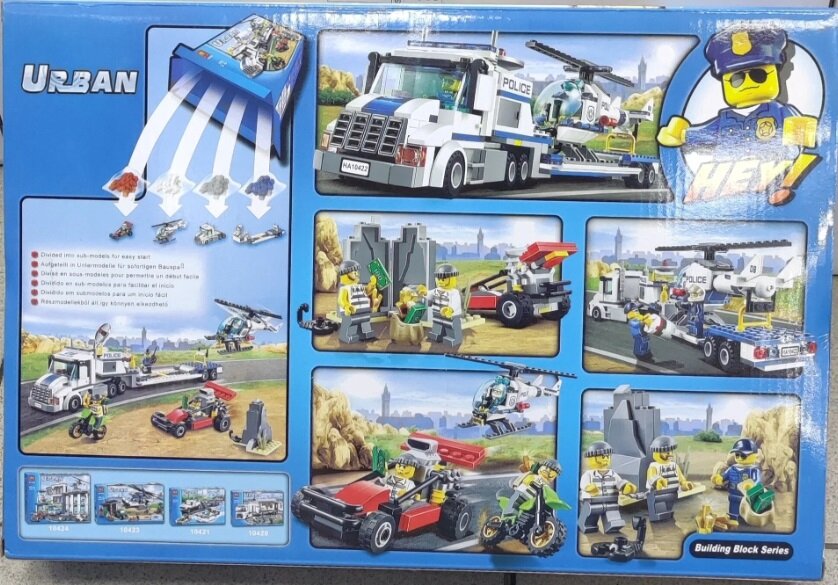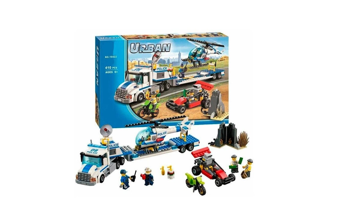 Конструктор BELA NO.10422 URBAN "Полиция, перевозчик вертолёта, грузовик, вертолет, машинка, мотоцикл" 410 дет.