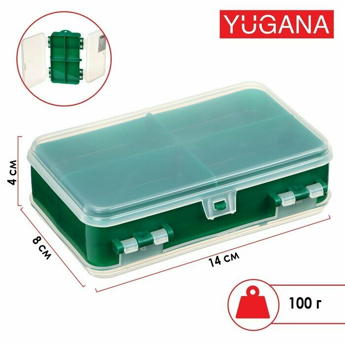 YUGANA Коробочка для оснастки YUGANA двухсторонняя, 14 x 8 x 4 см, цвет зелёный