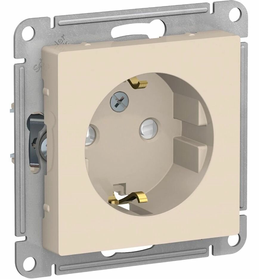 SE AtlasDesign Беж Розетка б/з со шторками, 16А, механизм