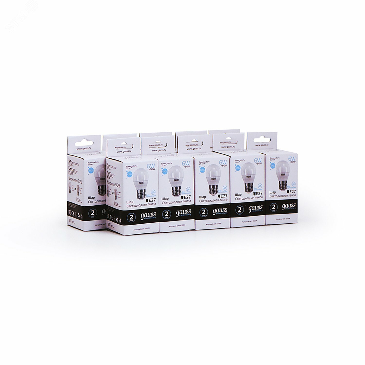 (10 шт) Лампа Gauss Elementary Шар 6W 470lm 6500K Е27 LED