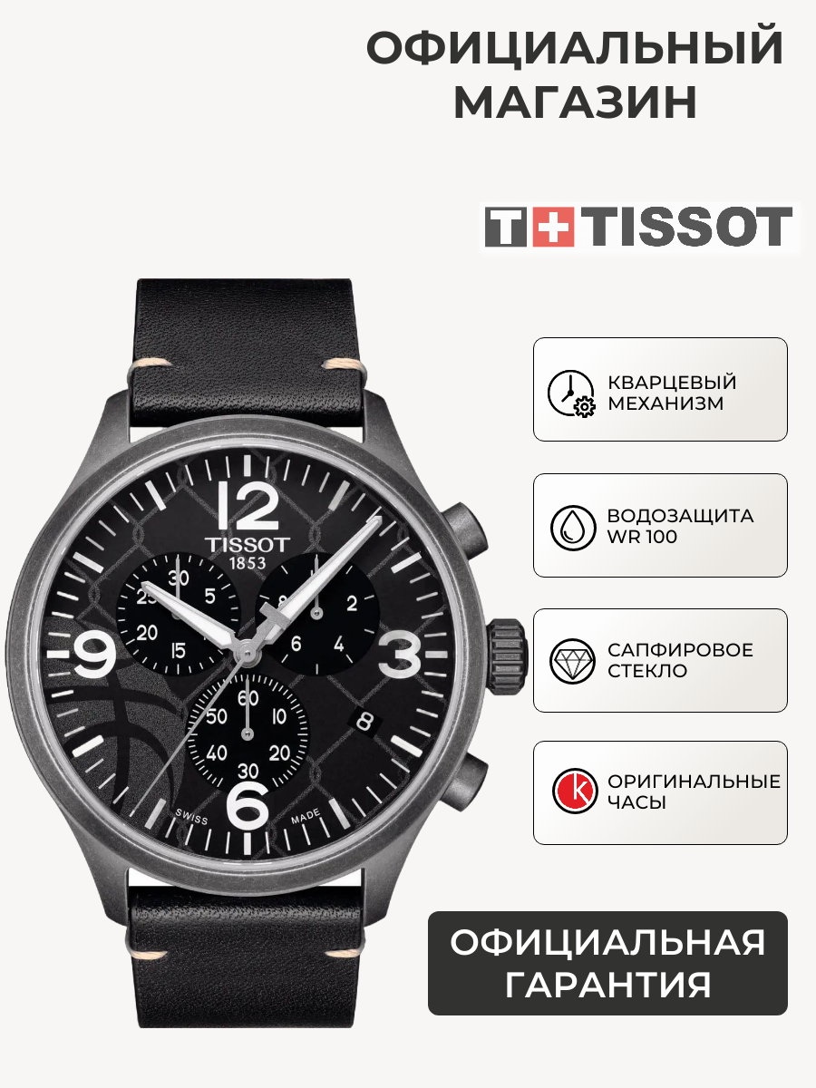 Швейцарские кварцевые часы Tissot Chrono Xl 3X3 Street Basketball T116.617.36.067.00 на кожанном браслете, с водозащитой 10 бар и международной гарантией от производителя