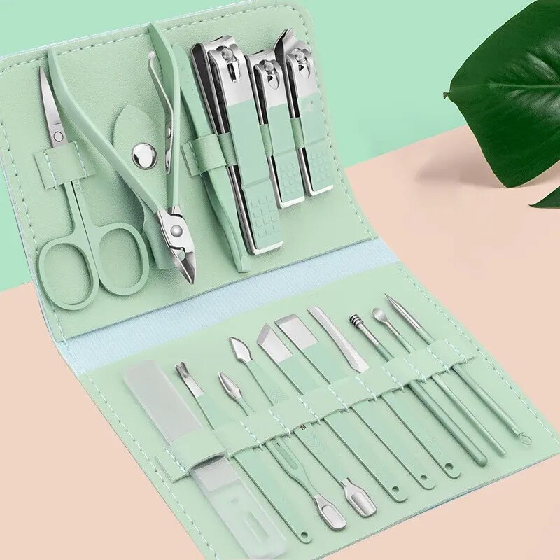 Купить Дорожный набор для маникюра и педикюра 16 в 1, цвет Зеленый