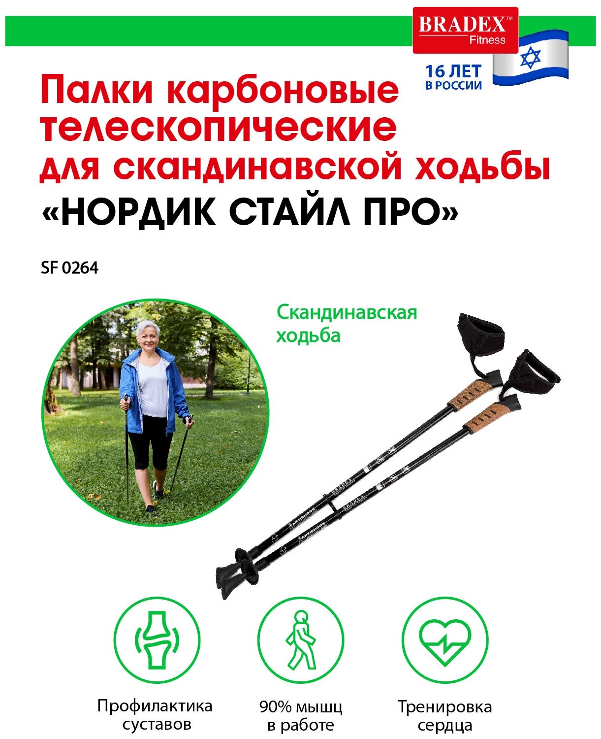 Bradex Палки карбоновые телескопические для скандинавской ходьбы Нордик Стайл про SF 0264 .
