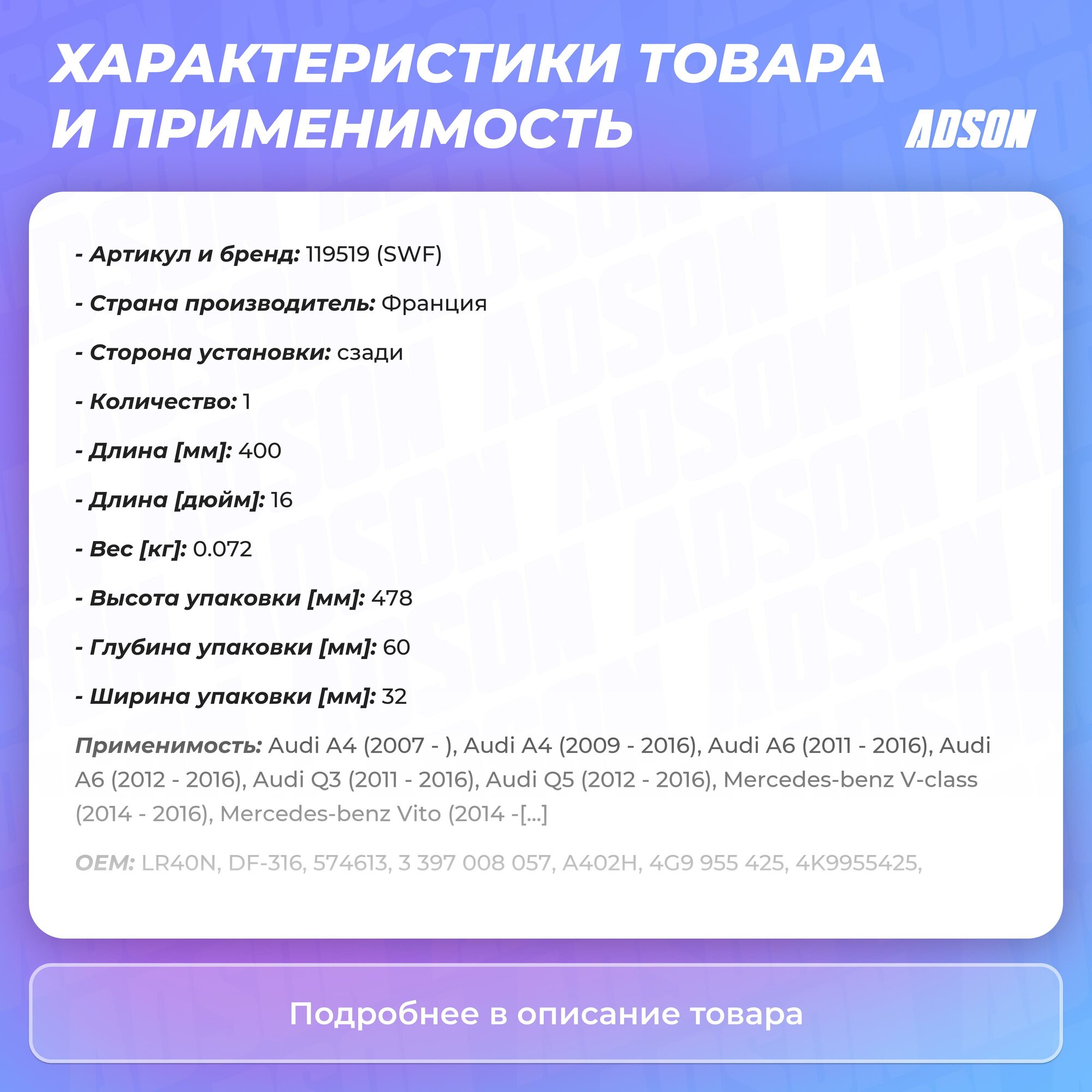 SWF119 519_щетка ! задн\ 400/16’ Audi A4 Avant 08> SWF 119519