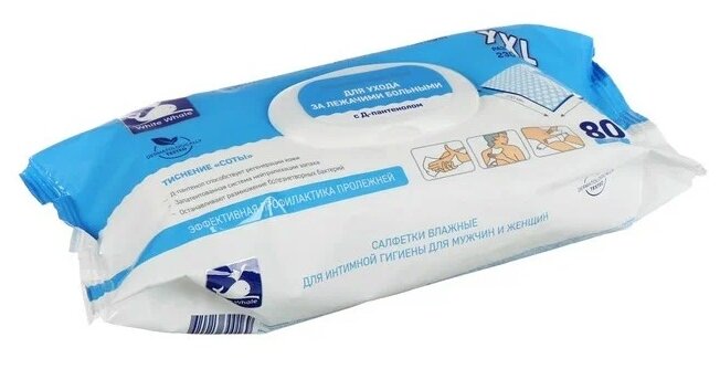 Влажные салфетки для ухода за лежачими больными с Д-пантенолом 80шт XXL White Whale