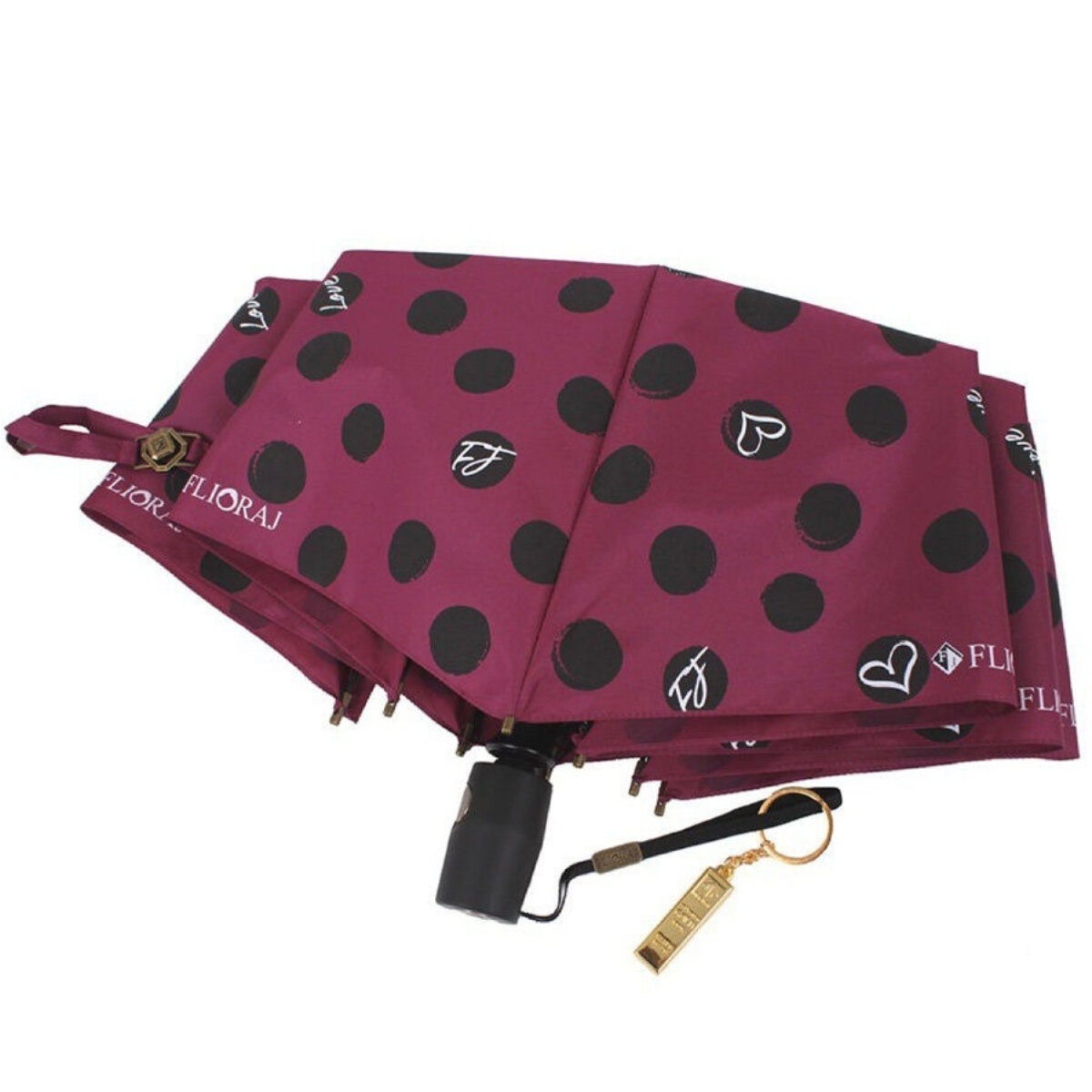 Зонт женский Flioraj Фиолетовый 3 сложения Автомат Антиветер с брелоком 16053 FJ