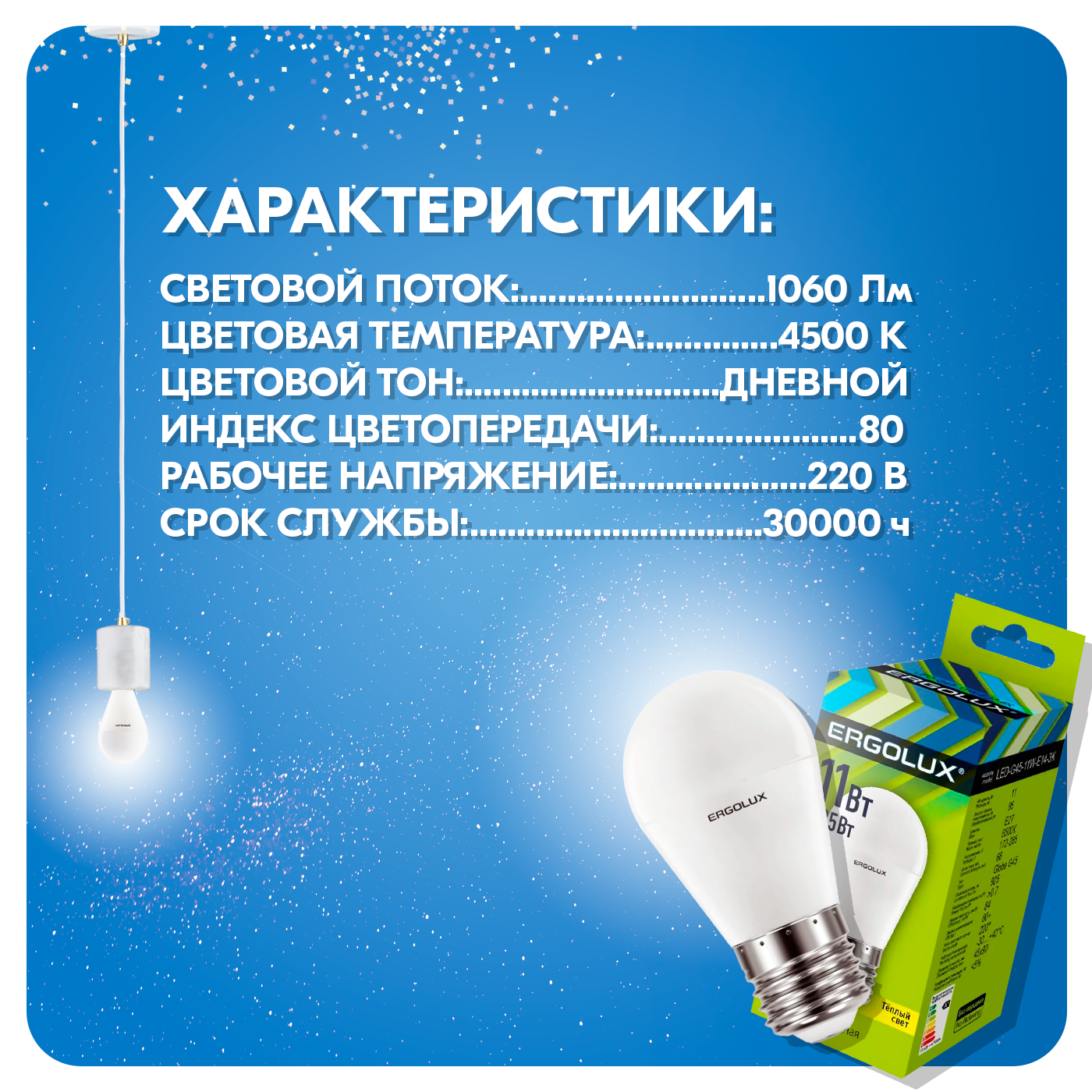 СохранитьЛампа светодиодная E27, 11 Вт, 95 Вт, шар, 4500 К, свет холодный белый, Ergolux интересное: