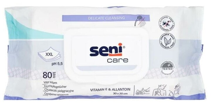 Seni Care салфетки влажные с витамином Е и аллантоином 80 шт