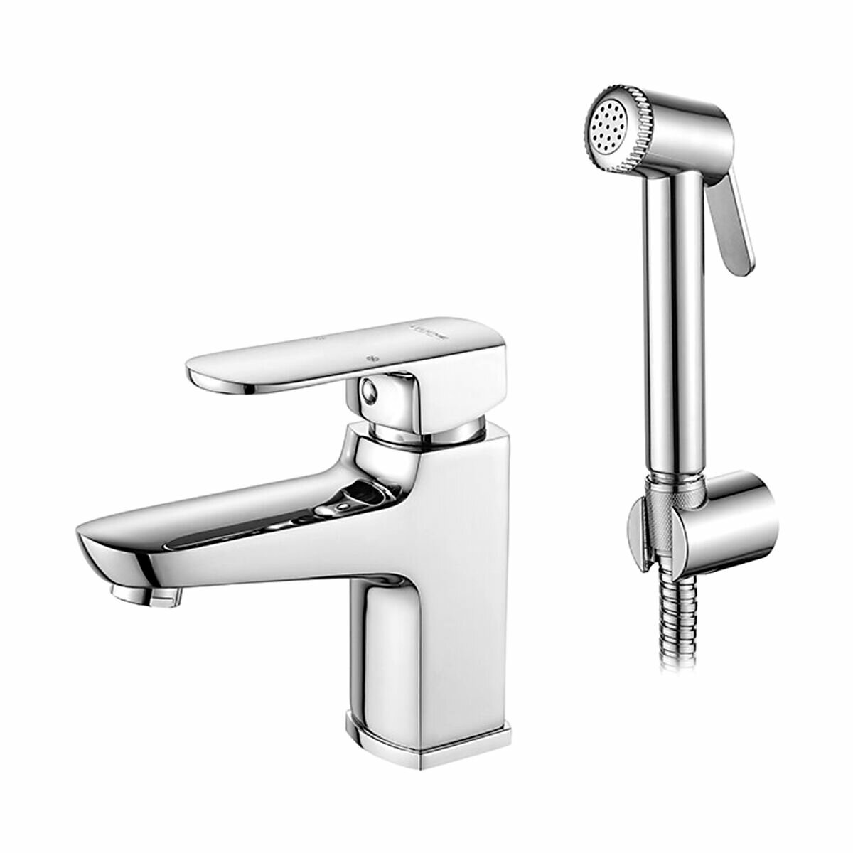 Однорычажный смеситель для раковины (умывальника) с гигиенической лейкой (душем) Ledeme L1254 хром, латунь
