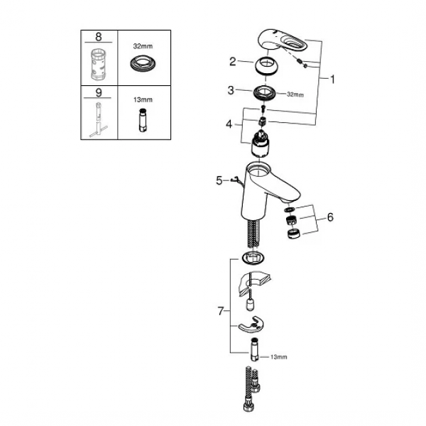 Grohe Eurostyle 33557 003 Смеситель для раковины с цепочкой S-Size