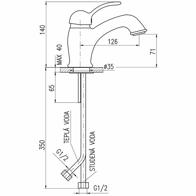 Смеситель для раковины без донного клапана Rav Slezak Labe L426.5SM