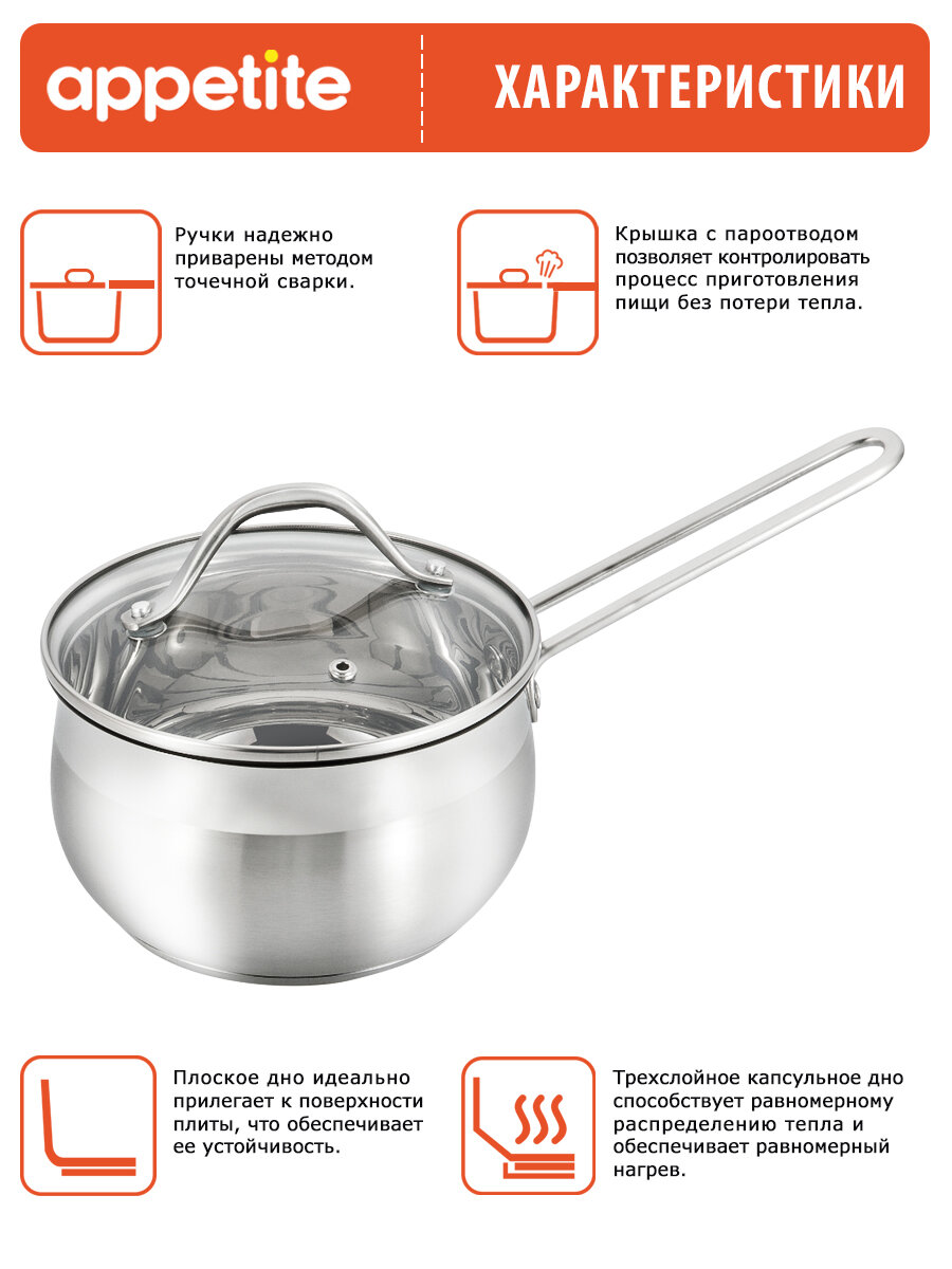 Кастрюля с крышкой Appetite Tessi, нержавеющая сталь, 2,6 л