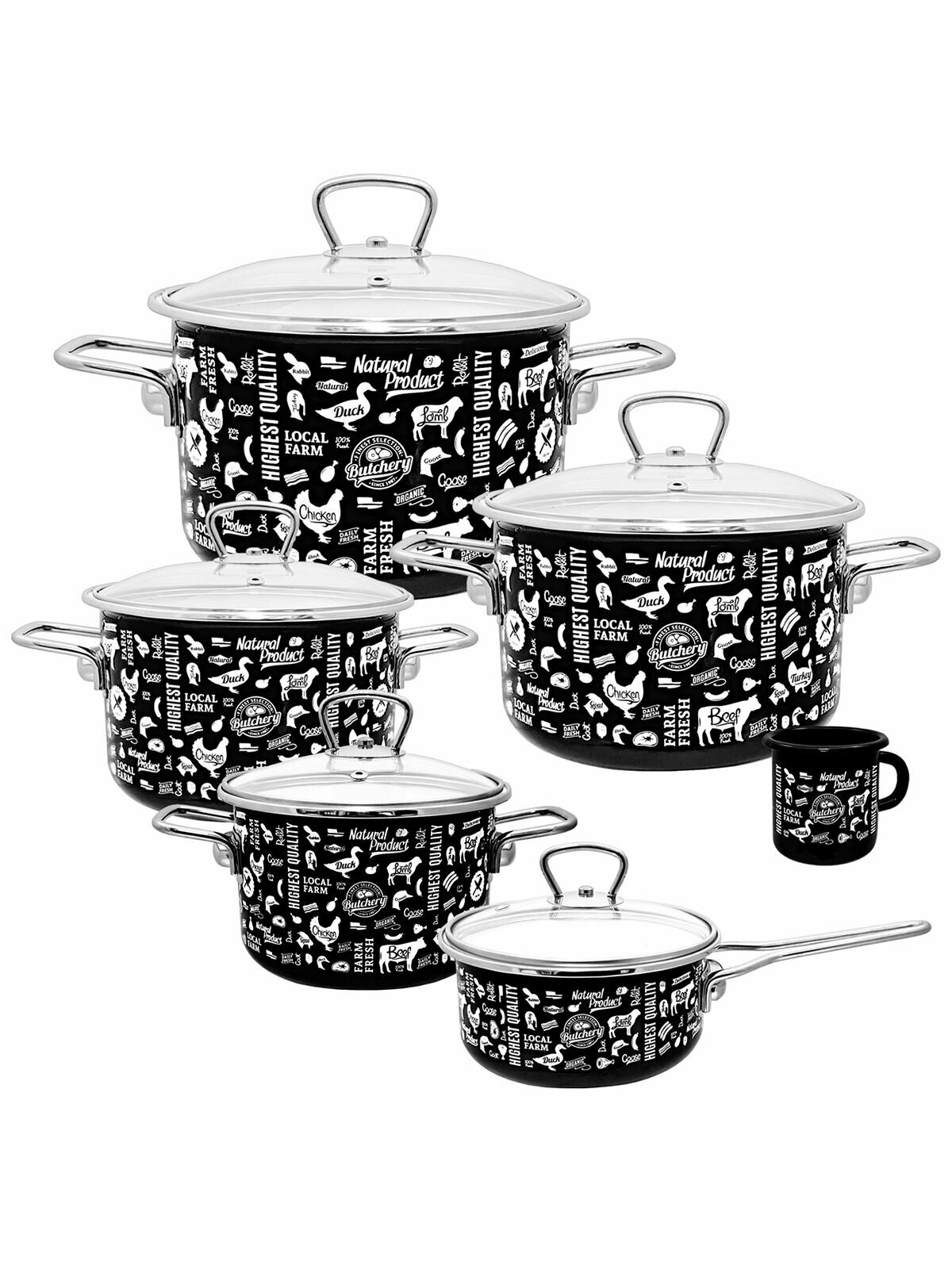 Кастрюля эмалированная с крышкой Botany black 2,0л ТМ Appetite
