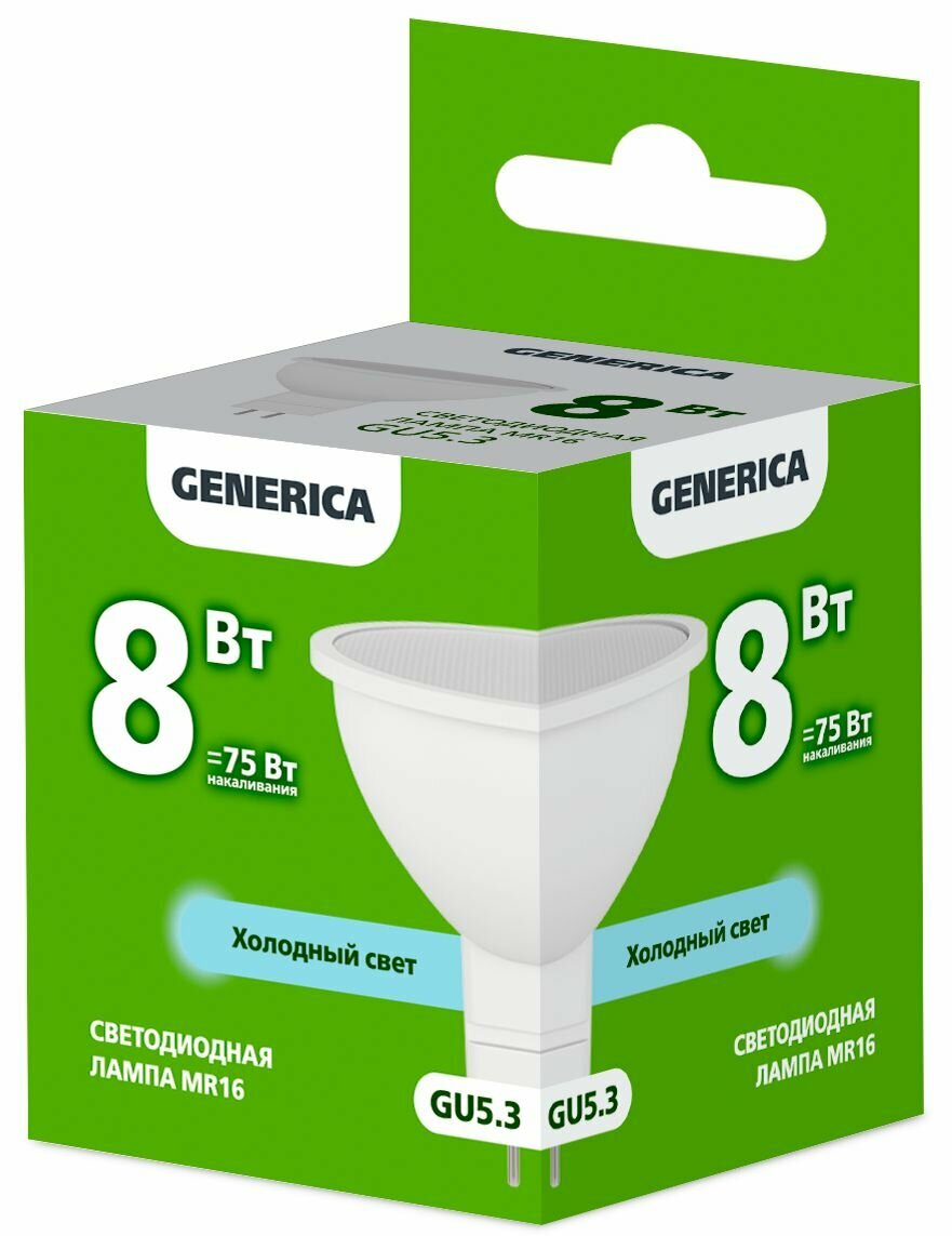 Светодиодная лампа GENERICA MR16 софит 8Вт 230В 6500К GU5.3 LL-MR16-08-230-65-GU5-G