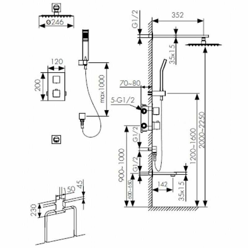 | Комплектация | лейка / верхний душ |