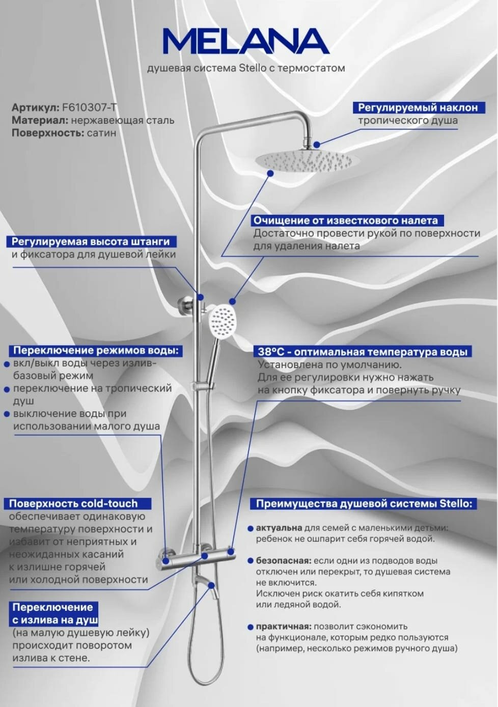 Душевая система с изливом Melana Stello 610307-T интересное: